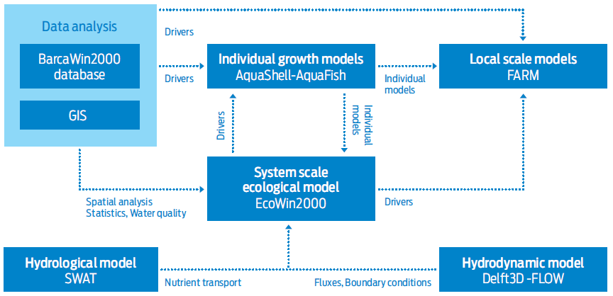 The main nutrient sources for the Ria are, in equal parts, loads from WWTP (45% N, 32% P) and diffuse loads from agricultural fertilization (55% N, 68% P);